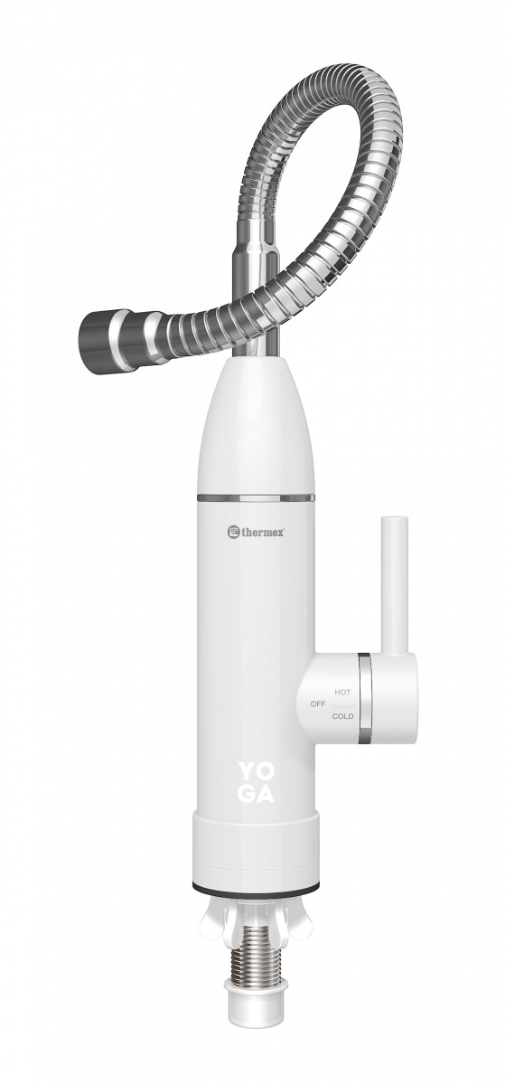 Проточный водонагреватель Thermex Yoga 3000 легко устанавливается вместо обычного смесителя и подключается к обычной розетке.