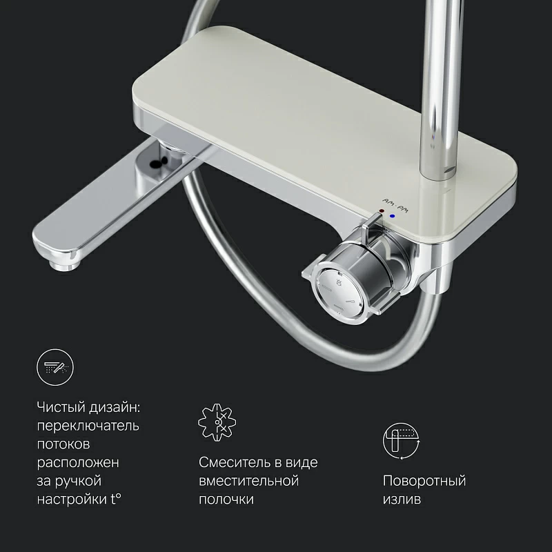 Душевая система AM.PM Like F0780700 стойка с тропическим душем, смесителем, изливом