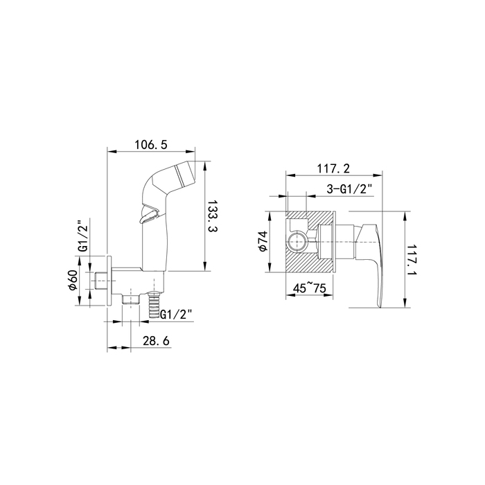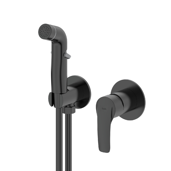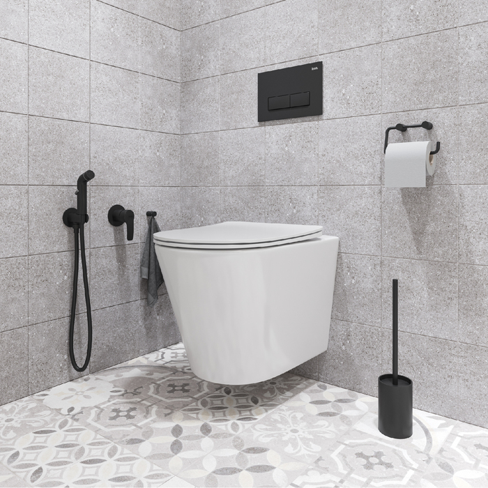 Гигиенический душ со смесителем Ray на 2 отверстия в трендовом черном цвете имеет универсальный дизайн и подойдет для различных вариантов интерьерных решений. Тонкий баланс плавных линий и строгой формы изделия позволяет придать ему удивительно гармоничный и завершенный облик. Смеситель скрытого монтажа Ray будет занимать минимум пространства туалетной или ванной комнаты, деликатно служа для решения важных гигиенических задач. В комплекте