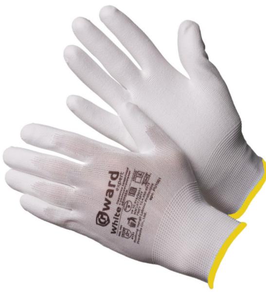 Перчатки нейлоновые, полиуретановое покрытие, белые, GWARD