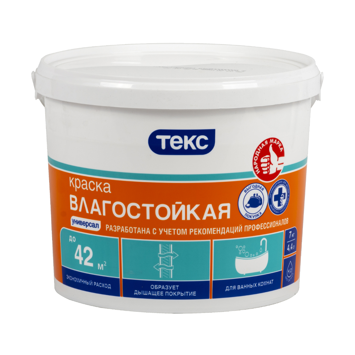 Краска водно-дисперсионная для сухих и влажных помещений Универсал белая, 7 кг, влагостойкая, Текс