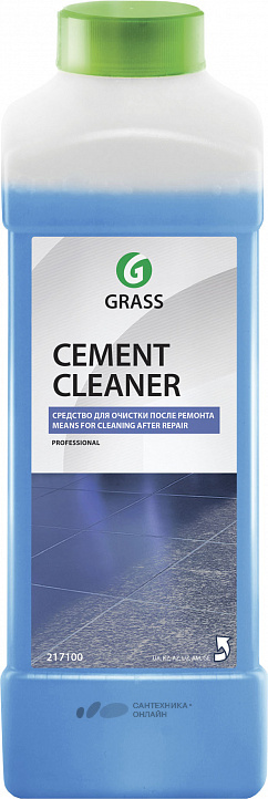 Grass Cement Cleaner (ГраСС Цемент Клинер), 1 литр - кислотное средство для послестроительной уборки. Применяется для очистки полов, плитки, стекла, мрамора, гранита и других поверхностей от остатков цемента, бетона, извести, ржавчины, оставшихся после ремонта или строительства.