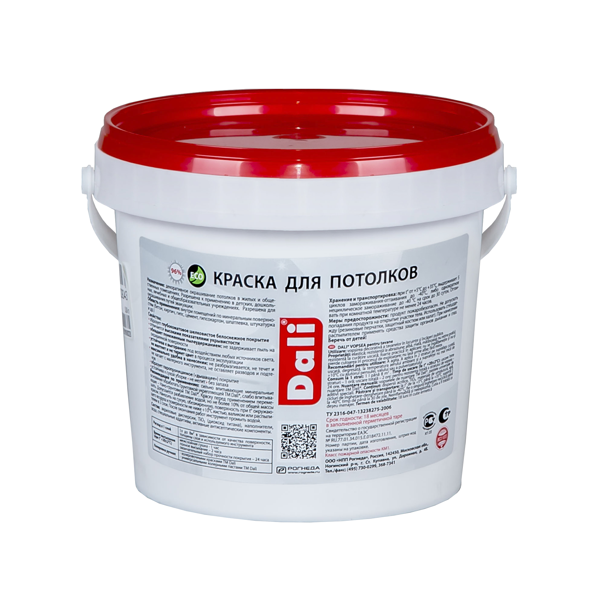 Краска акриловая для потолков снежно-белая (матовая) 0,9л "DALI"
