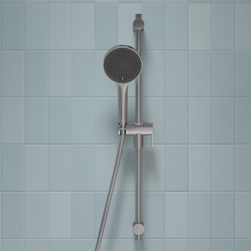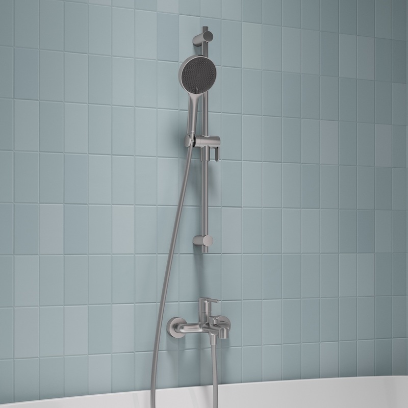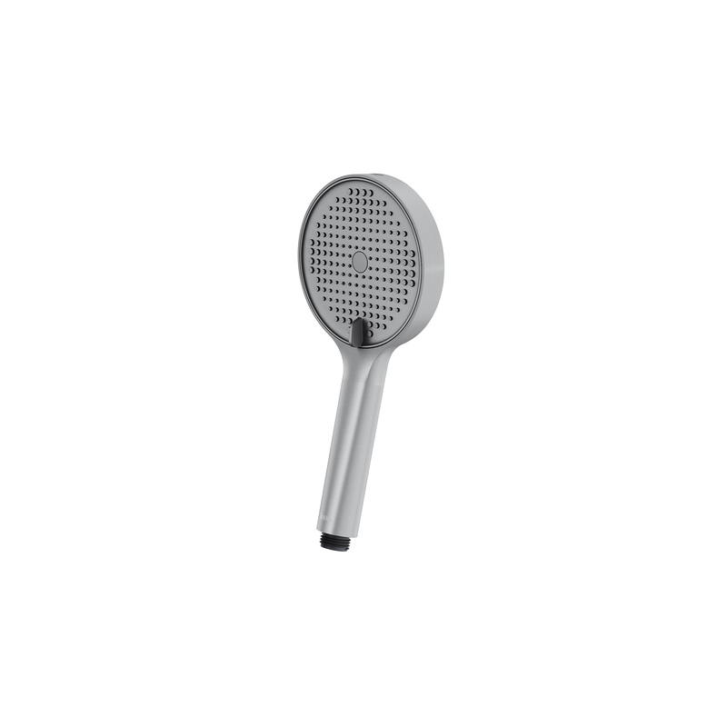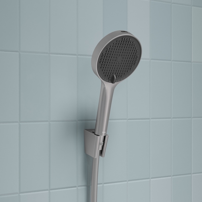 Ручная лейка для душа Aiger (диаметр 120 мм) в трендовом оттенке матового хрома выглядит красиво, стильно и современно благодаря однотонной темно-серой лицевой части и силиконовым форсункам в тон. Лейка будет гармонично сочетаться с любым одноцветным смесителем и душевым шлангом благодаря универсальному соединению G ½.