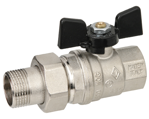 Кран шаровой для воды со сгоном 1" Г-Ш-Б Bugatti латунь никелированная (6)