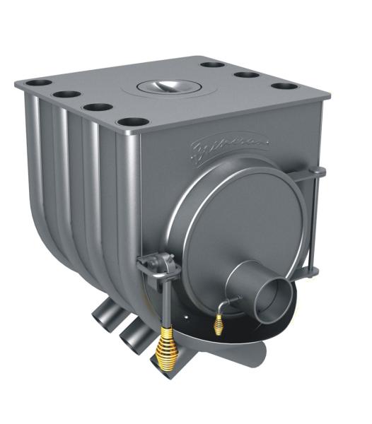 Печь оборудована двумя регуляторами: на дверце (регулятор мощности) и на дымоходном патрубке сзади печи (регулятор-газификатор).