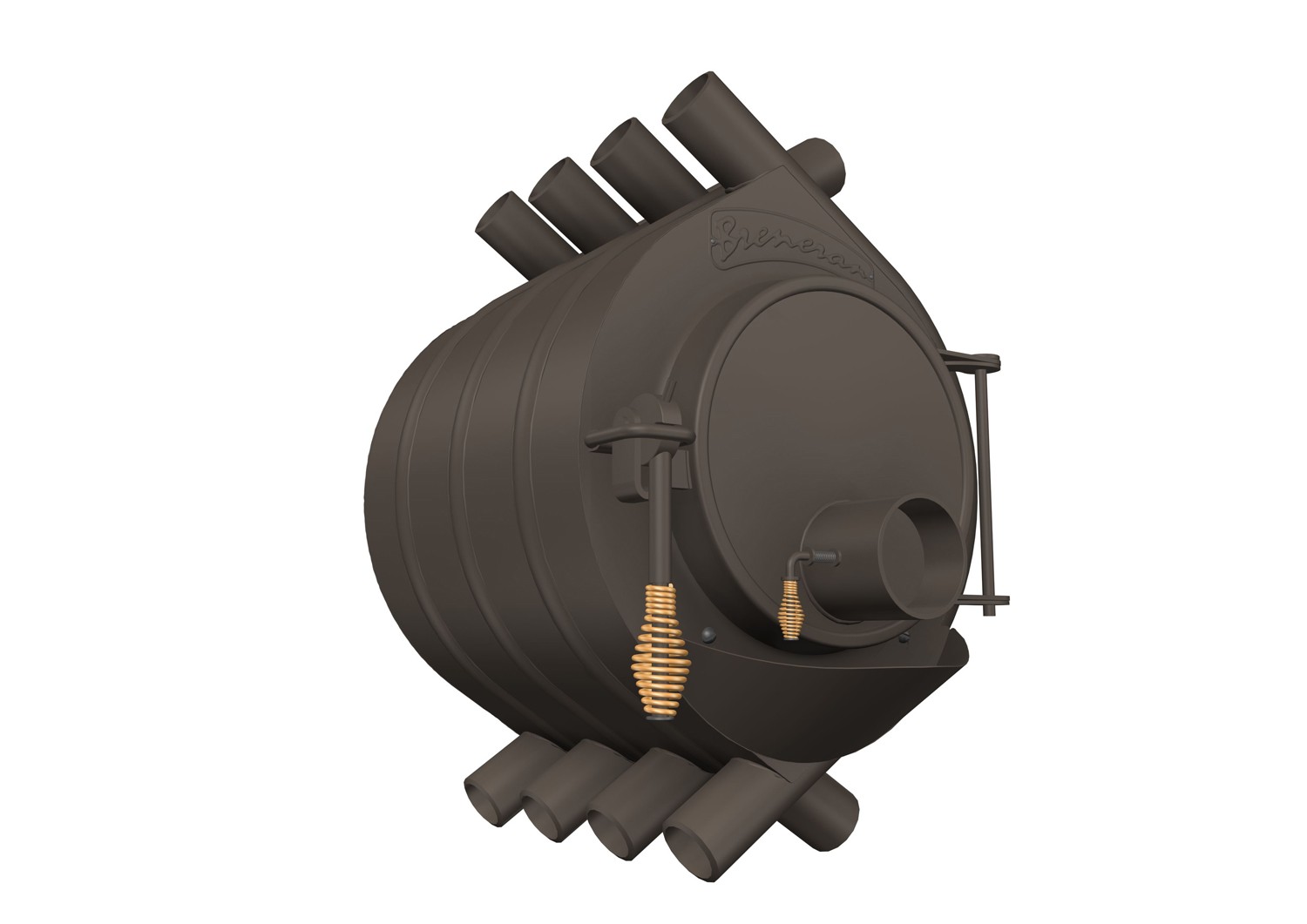 Печь газогенераторная. Мощность 6кВт. Объем помещения до 100 м куб.; D дымохода 120мм. Камера сгорания 40л. D проема двери 286мм. Габариты (ДхШхВ), мм: 608х435х632. Масса 56кг.