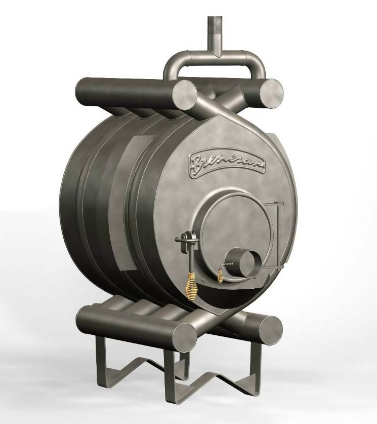 Для отопления помещений до 400 м3; d дымохода, мм - 150; габаритные размеры - 1000*700*1300