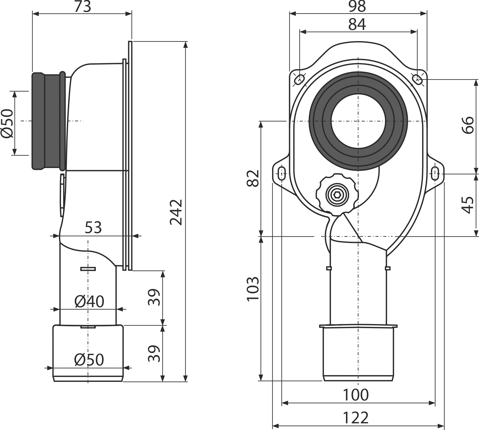 Подключение к сливной трубе Ø40/50 мм