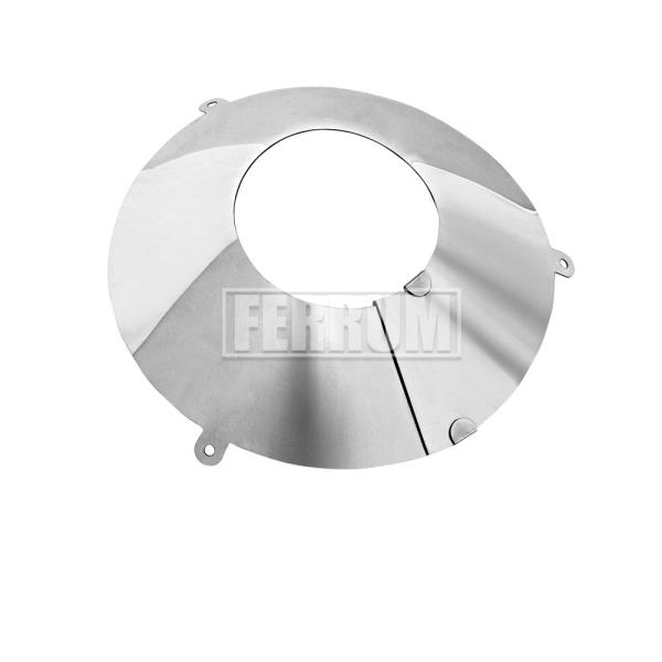 Фланец предназначен для декоративной отделки прохода дымохода через негорючую стену. Фланец имеет замковое соединение, что позволяет применять его к дымоходам различного диаметра. Для крепления к стене у фланца имеются специальные крепежные кронштейны. Фланец изготовлен из стали AISI 430 толщиной 0,5мм. Фланец не подходит для использования в качестве герметизирующего элемента для крышной разделки. На крышную разделку устанавливается