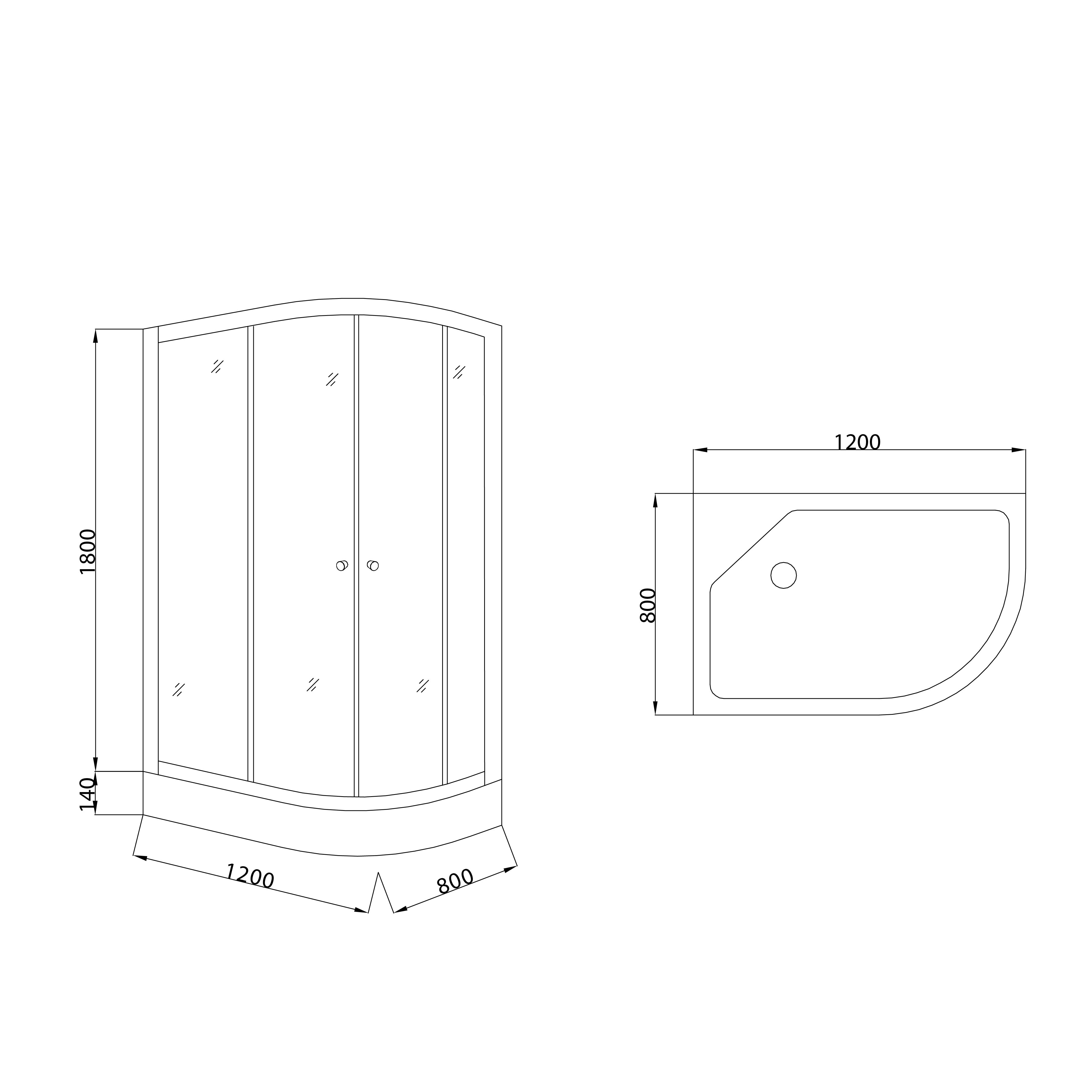 Душевое ограждение Hydroom HD-ОU12080NL 120х80 ассиметричное левое
