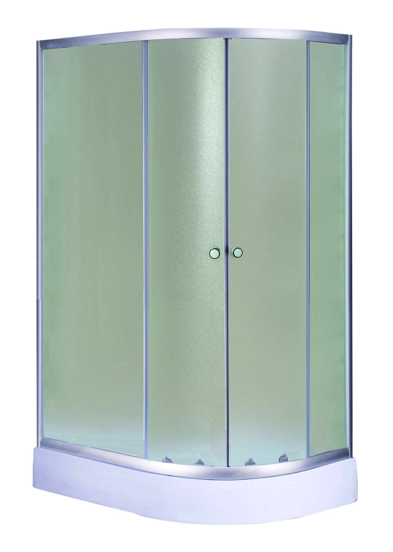 Душевое ограждение угловое левое, размер: 120х80х194 см, низкий поддон 14 см с сифоном, без задней стенки, рифленые передние стекла 0,4 см, алюминиевые профили цвета матовый хром, без крыши.