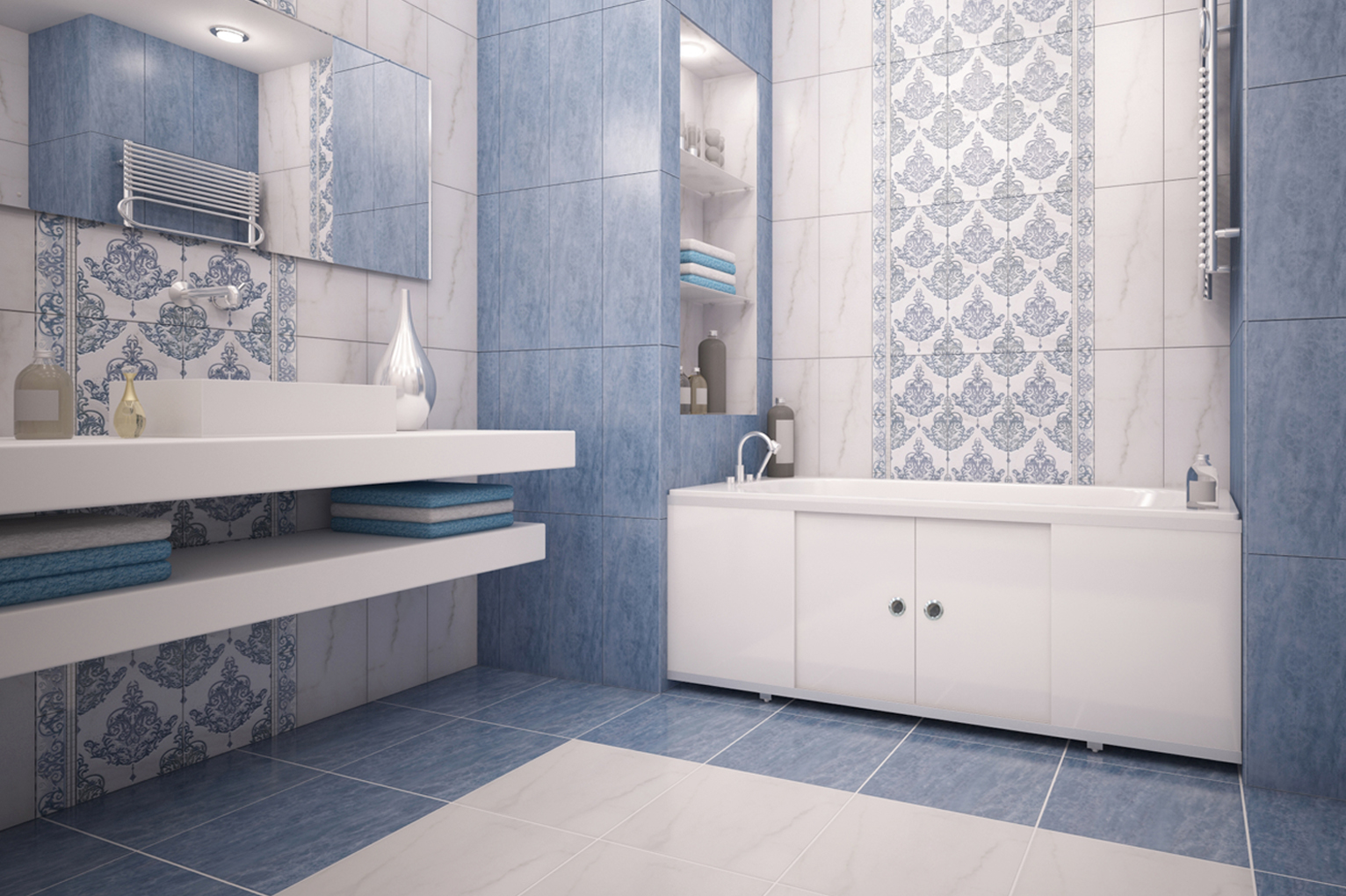 Дверки изготовлены из цельной ПВХ-панели толщиной 10 мм, на которую нанесена ультрафиолетовая печать рисунка с финишной ультрафиолетовой лакировкой, каркас изготовлен из алюминиевого окрашенного профиля белого цвета.