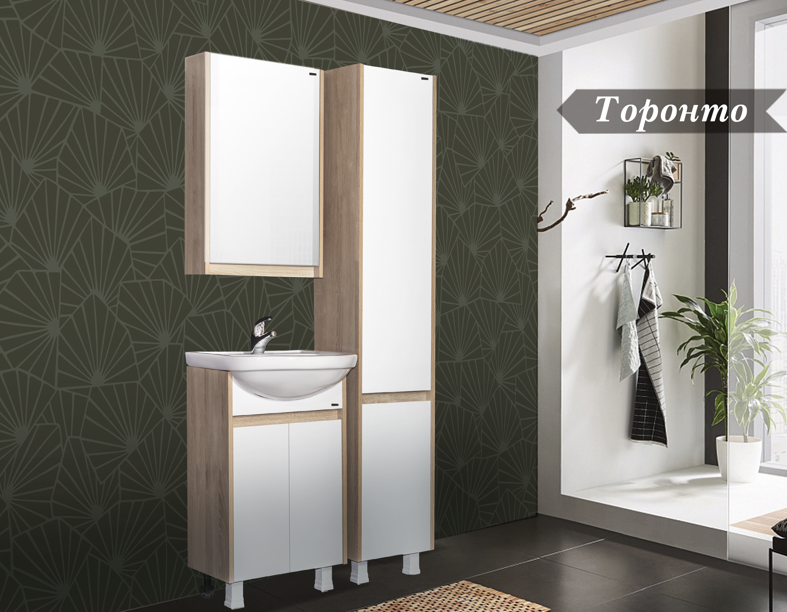 Тумба Афина Торонто 50/2 белый/дуб сонома под раковину Акватон 50 - это современная и удобная мебель для ванной комнаты.