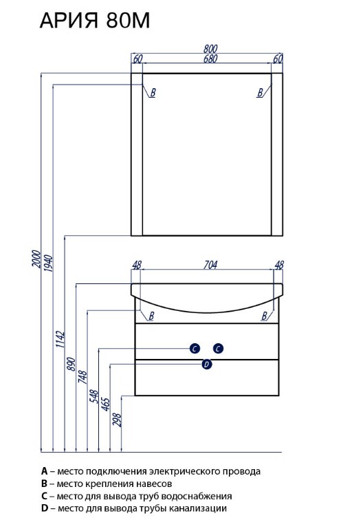 Тумба Aquaton Ария-80 М (Белая) под умывальник Смайл-80 1A140801AA010