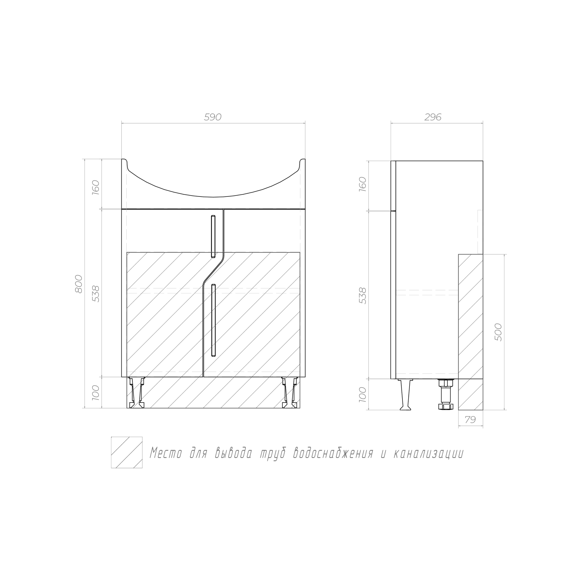 Тумба Vigo Turin 600-2-0 под раковину Уют 600