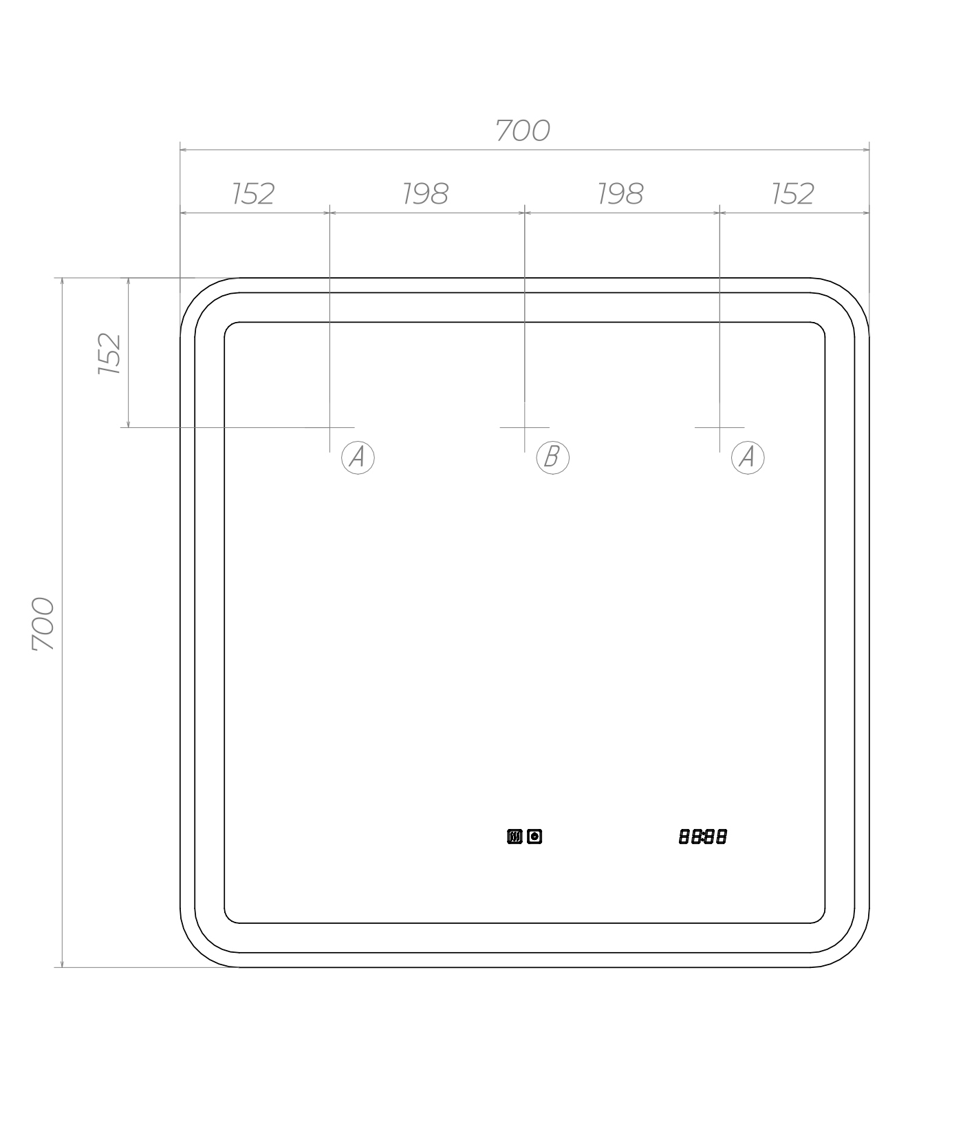 Скругленные углы зеркального полотна и повторяющая периметр подсветка, большая отражающая поверхность - изящные и функциональные акценты LED-зеркала Grani Luxe 700.