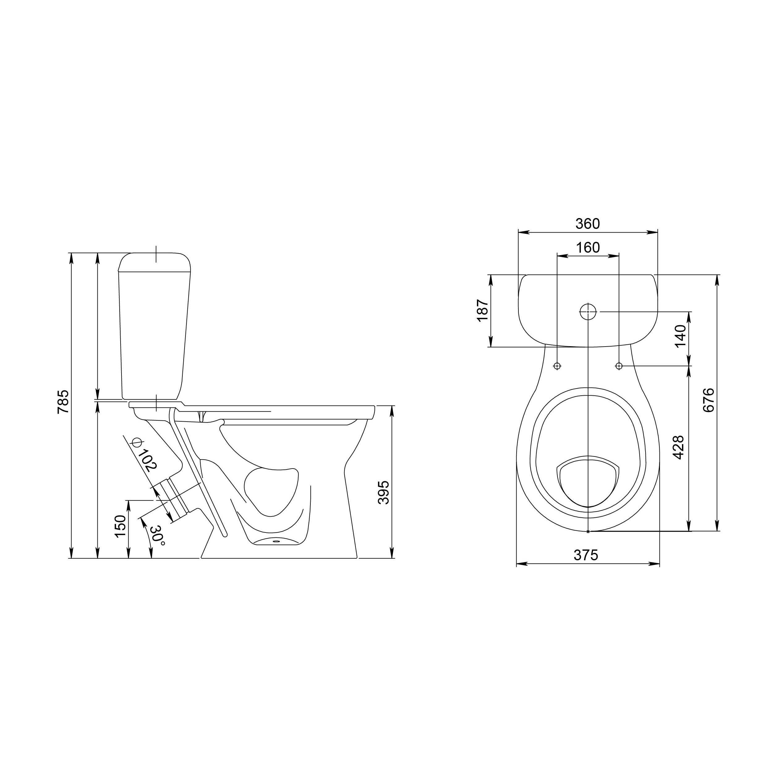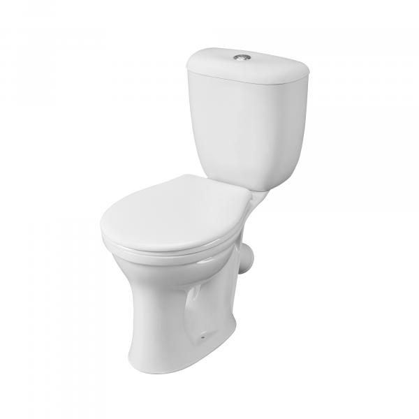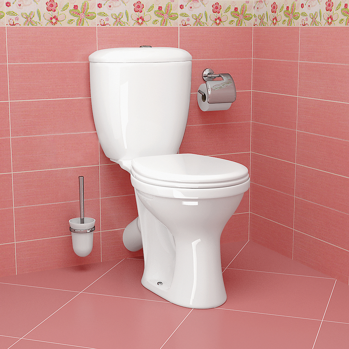 Напольный унитаз-компакт с системой антивсплеск, полипропиленовое сиденье, одноуровневая арматура 6 л.