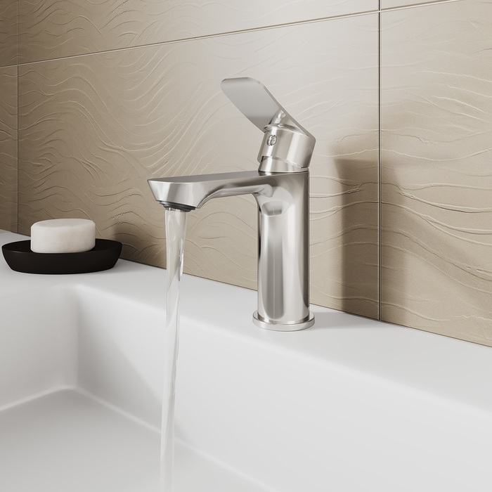 Сочетание глянца и плавных линий смесителя для умывальника Demi — беспроигрышная комбинация, которая подходит для большинства современных пространств. Благодаря продуманной форме ручки капли воды беспрепятственно скатываются с корпуса смесителя, предотвращая образование разводов.