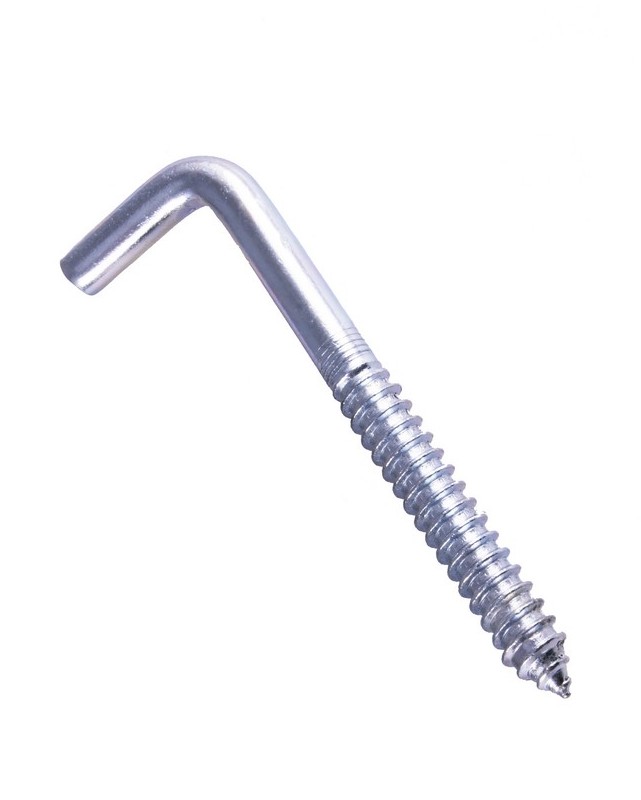 Шуруп-костыль производится из стальной проволоки с последующим гальваническим оцинковыванием. Имеет Г-образную форму, острый наконечник, резьба расположена только на вкручиваемой части самореза.