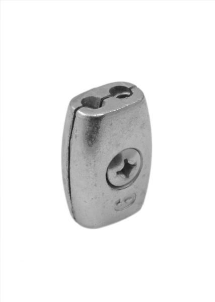 Применяется для изготовления разъемного соединения тросов между собой, а также для изготовления петель на их концах. Обжимной зажим, или бочка, представляет собой две рельефные пластины, по периметру которых проделаны канавки для закладки троса. Они соединяются между собой с помощью винта.