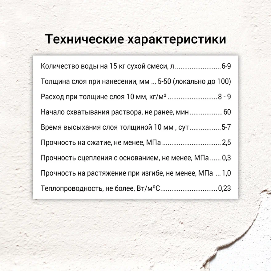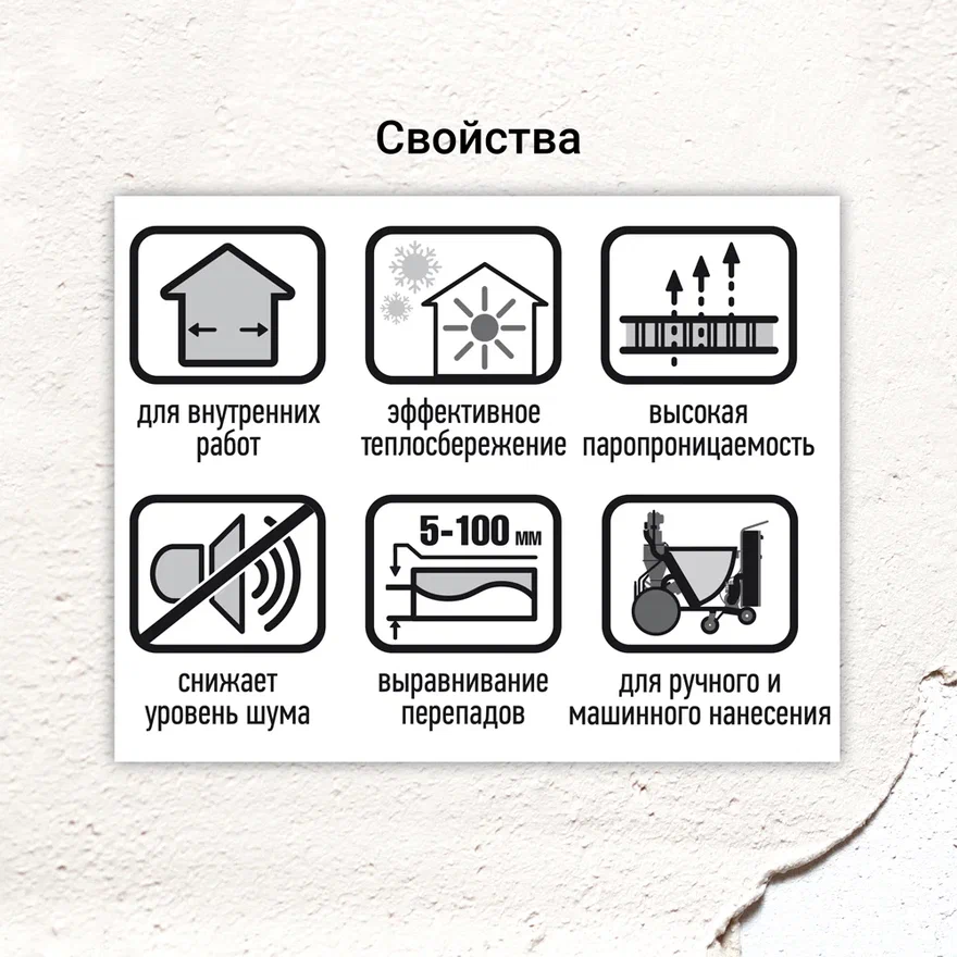 - Материал поверхности применения: Кирпич, Бетон, Гипс, Пенобетонный блок, Цементно-песчаные основания