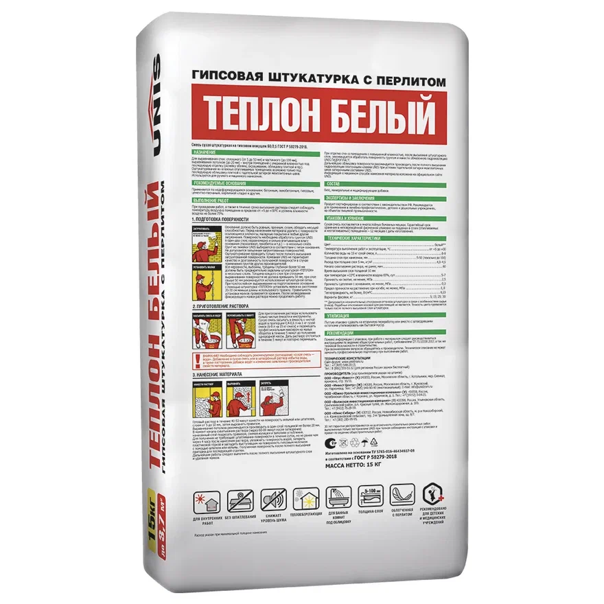 Штукатурка гипсовая UNIS Теплон БЕЛЫЙ 15кг