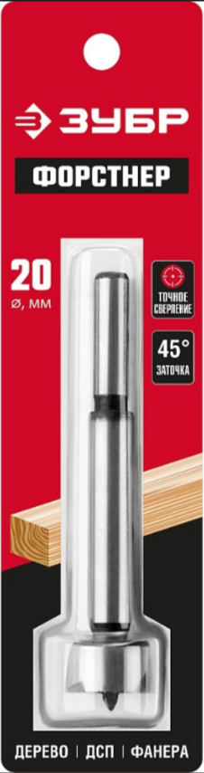 Сверло Форстнера 20 мм, цилиндрический хвостовик, Зубр