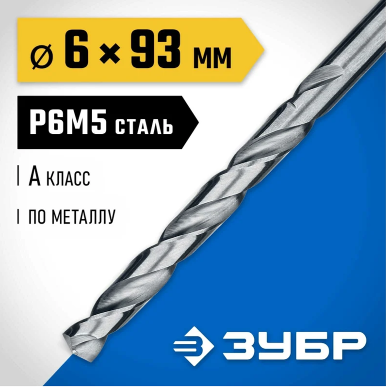 Сверло по металлу 6,0x93/57 мм Р6М5, цилиндрический хвостовик, ЗУБР